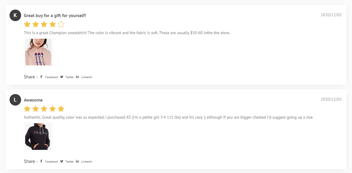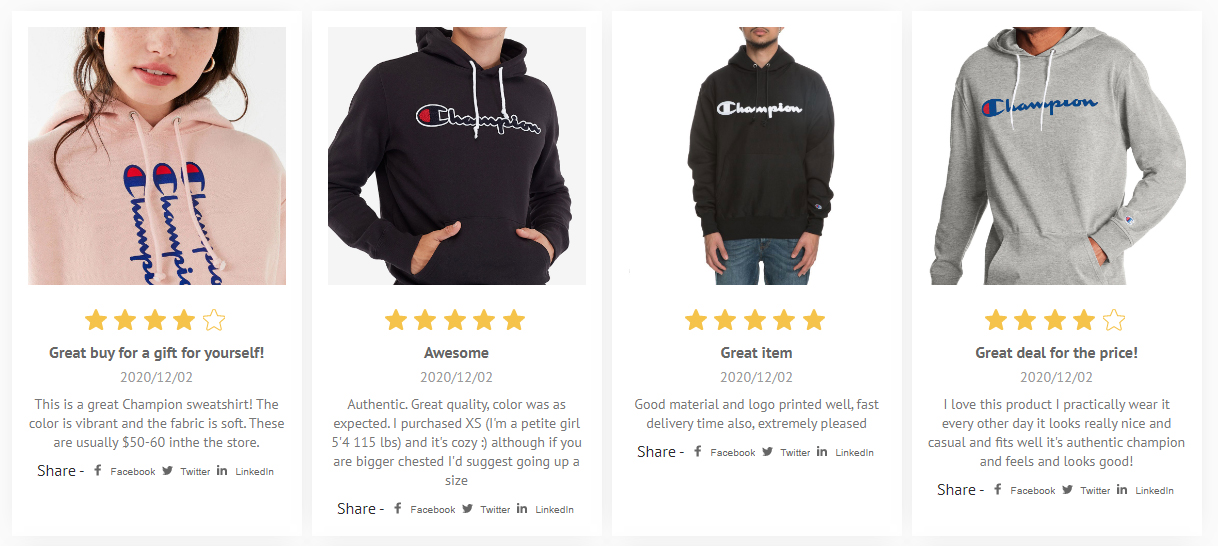 Displays or Hide Reviews Share Buttons(for Facebook, Twitter, or Linkedin).