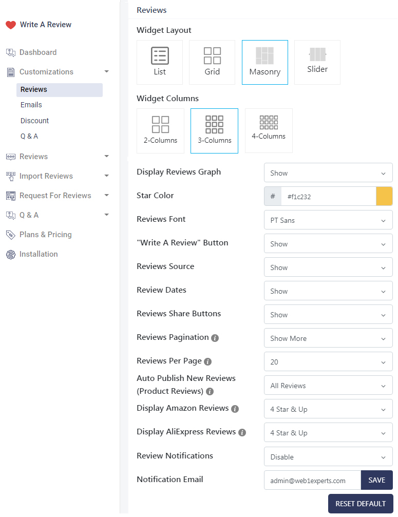 Bright Product Reviews provide high-level customizations to customize the reviews widgets' to match it with your website with many advanced options.