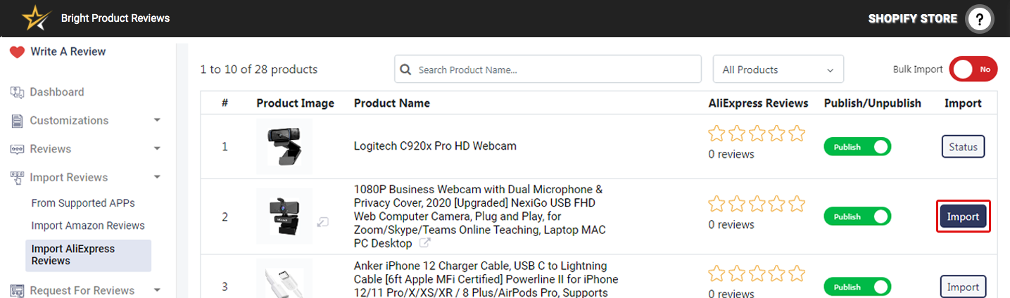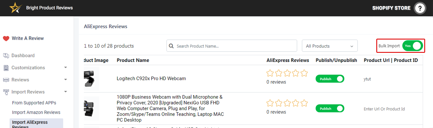 Bright Product Reviews offers to import Product reviews from AliExpress products.