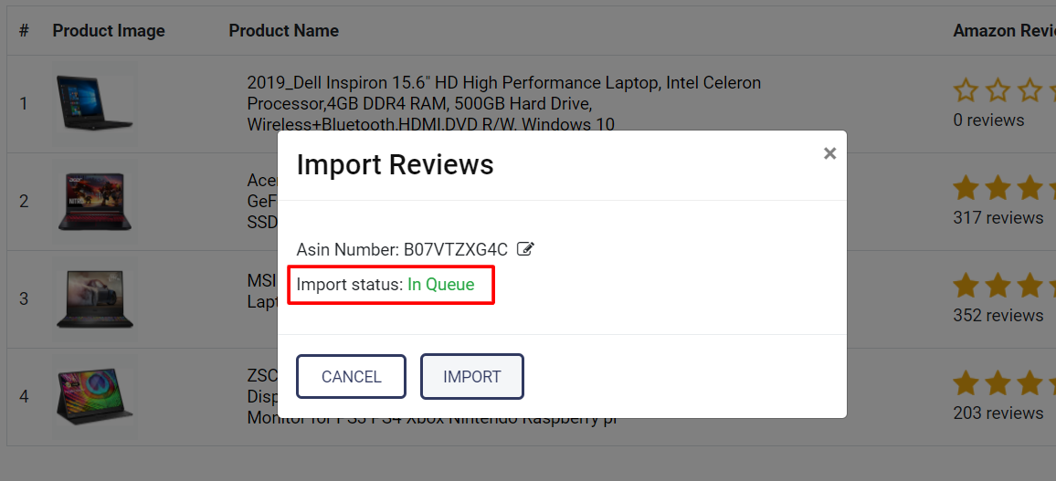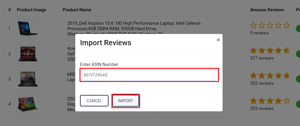 3. Go to Reviews => Import Amazon Reviews & click on the import button next to products.