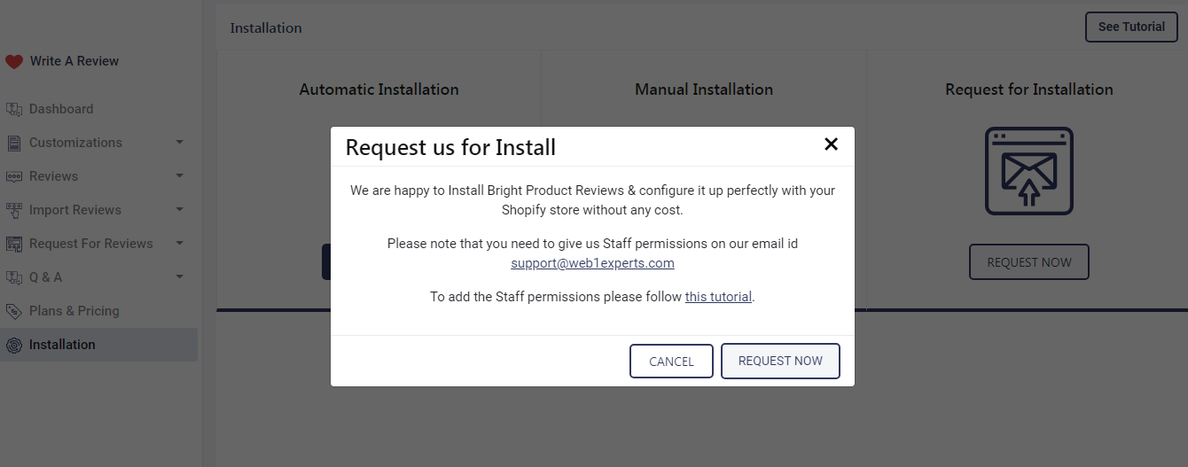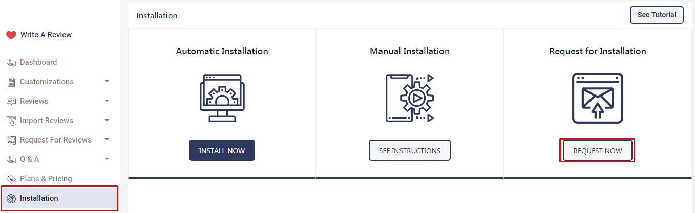 2. Select "Request for Installation" & click on the "Request Now" button.